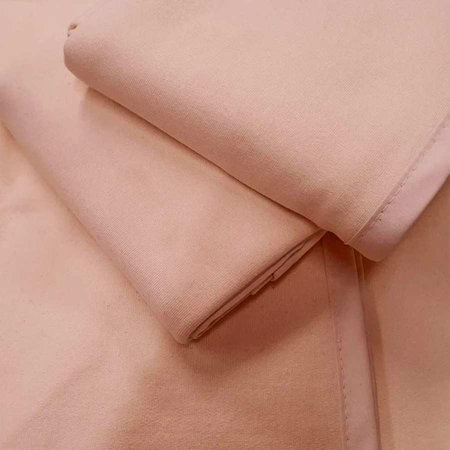 These mattress overlays are made from 100% pure Organic Cotton Fleece which is similar to sweater fabric. They sit on top of the mattress and are finished with a bound edge.